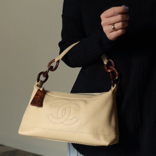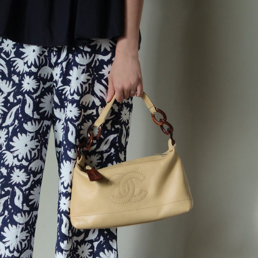 Chanel Vintage Beige Caviar Leather CC Tortoise Top Handle Bag