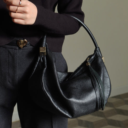 Chanel Vintage CC Dice Fringe Black Hobo 2way bag