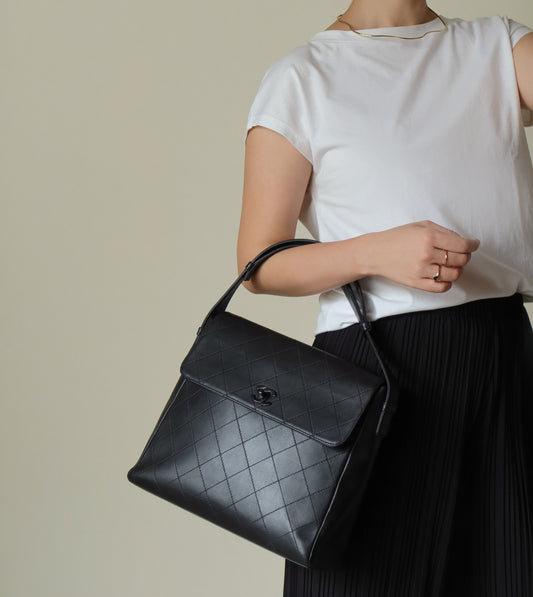 Chanel Vintage Black Lambskin Quilted CC Turn lock Shoulder Bag