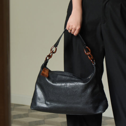 Chanel Vintage Black Caviar Leather Coco Mark Large Hobo Shoulder Bag