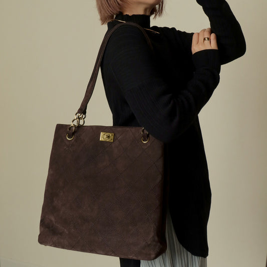 Chanel Vintage Dark Brown Quilted CC Turn lock Shoulder Tote Bag