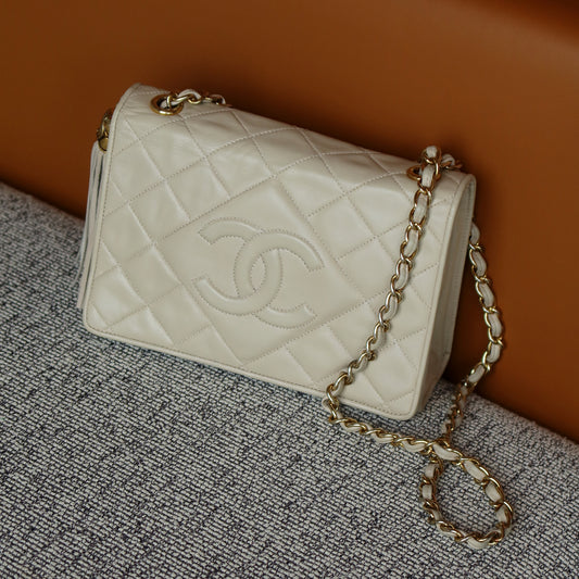 Chanel Vintage Matelasse Quilted Coco mark Light Beige Lambskin Flap Bag