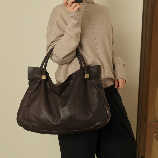 Chanel Vintage Brown Leather Coco mark Dice Oversized Hobo Bag