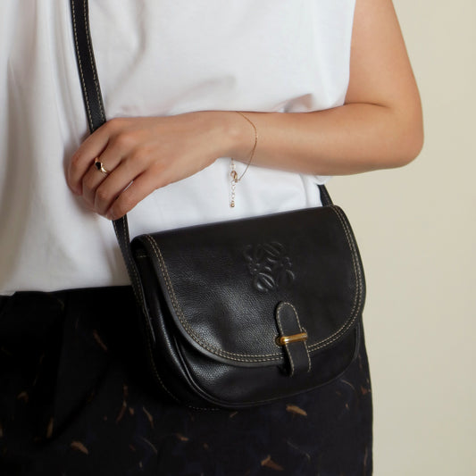 Loewe Vintage Black Leather Barcelona Crossbody Flap Bag