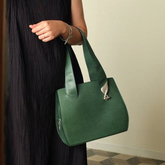 Loewe Vintage Emerald green Leather Knot charm Rounded Shoulder Bag