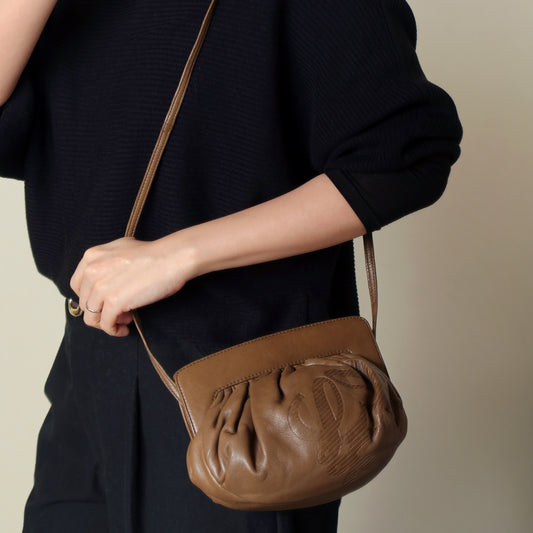Vintage Loewe Beige Grained Leather Half-moon Purse Bag