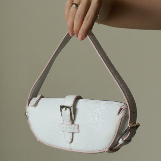Loewe Vintage White x Pink Leather Half-moon Buckle Weekend Bag