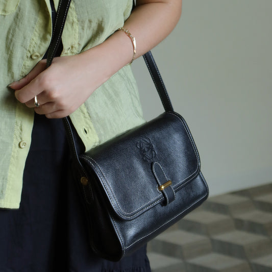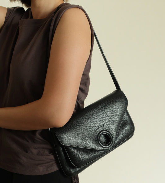 Loewe Vintage Black Leather Rumani Shoulder Flap Bag