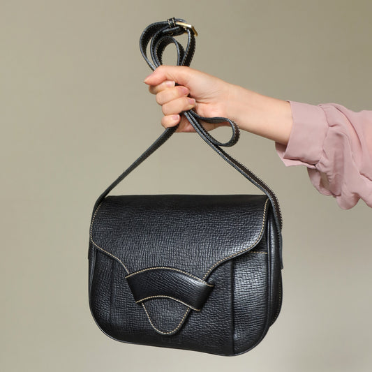 Loewe Vintage Black Leather Stitching Design Pochette Crossbody Bag