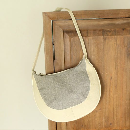 Loewe Vintage Gray Ivory Mixed Leather Canvas Half-moon Shoulder Bag