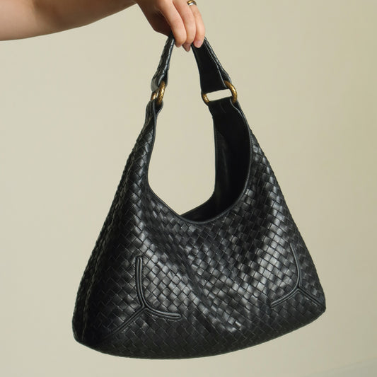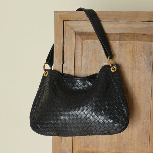 Bottega Veneta Vintage Black Intrecciato Leather Hobo One Shoulder Bag