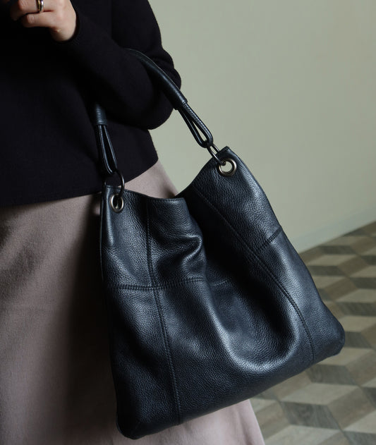 Bottega Veneta Vintage Black Grained Leather Cross Stitching Shoulder Bag