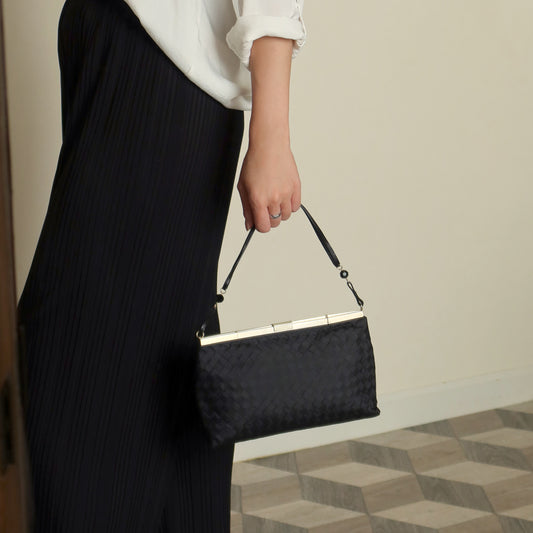 Bottega Veneta Vintage Black Intrecciato Kiss Lock 2way Bag