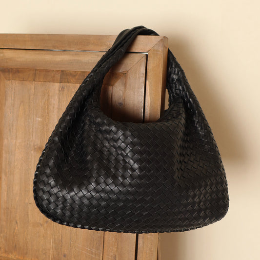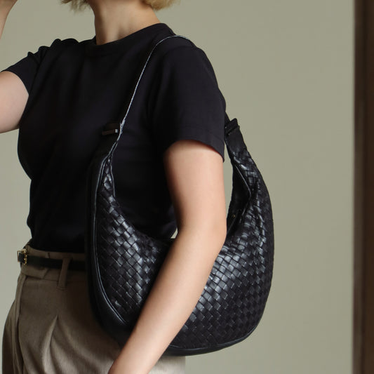 Bottega Veneta Vintage Black Intrecciato Braided Strap Hobo style Shoulder Bag