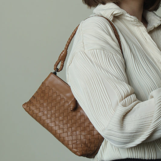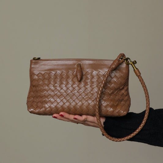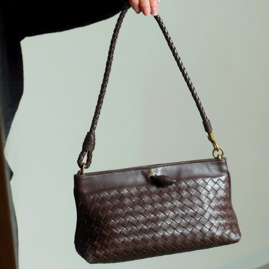 Bottega Veneta Vintage Brown Intrecciato Woven Pochette Shoulder Bag