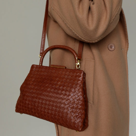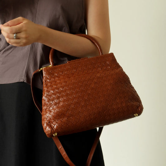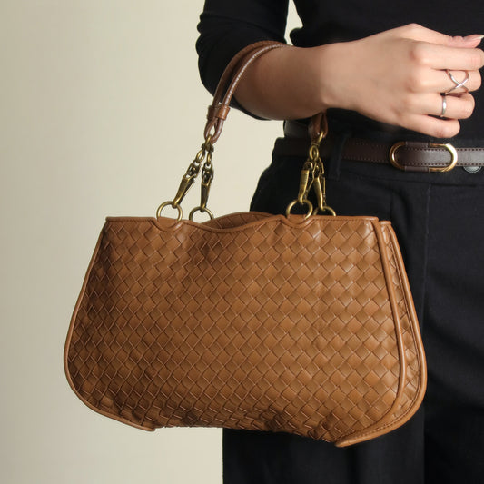 Bottega Veneta Vintage Caramel Brown Intrecciato 2 way Top Handle Shoulder Bag