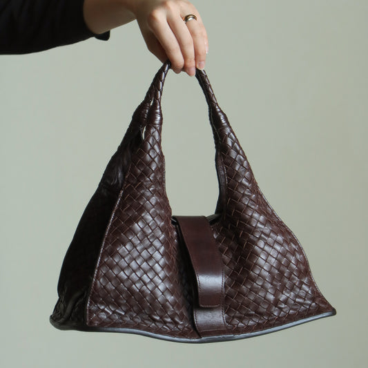 Bottega Veneta Vintage Dark Brown Intrecciato Campana Hobo Shoulder Bag