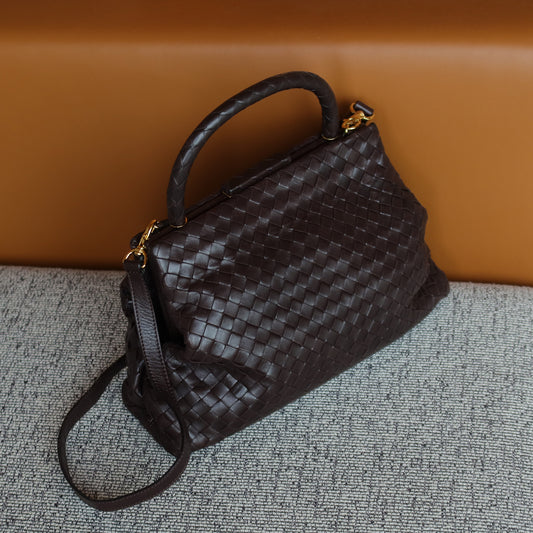 Bottega Veneta Vintage Dark Brown Intrecciato Kiss Lock 2way Bag