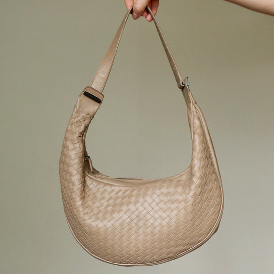 Bottega Veneta Vintage Brown Intrecciato Kiss Lock Half Moon Bag