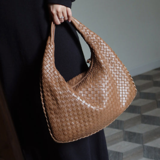 Bottega Veneta Vintage Caramel Brown Intrecciato Weave Veneta Hobo Shoulder Bag
