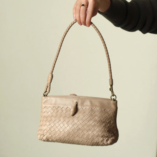 Bottega Veneta Vintage Sand Beige Intrecciato Pochette Clutch Shoulder Bag