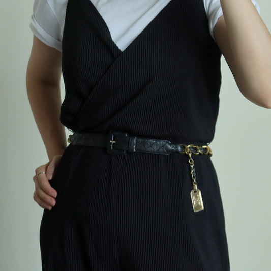 Chanel Vintage Black Quilted Leather Chain Belt with Charm