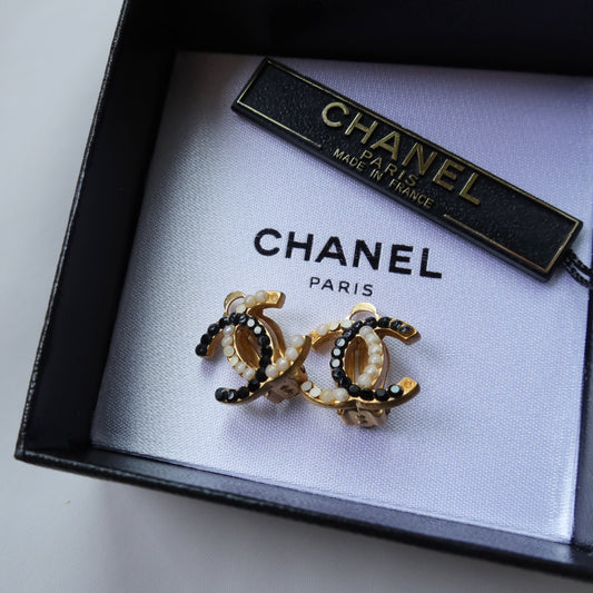 Chanel Vintage CC logo Rhinestones Clip-on Earrings