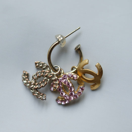 Chanel Vintage Triple CC Logo Charm Hoop Single Earring