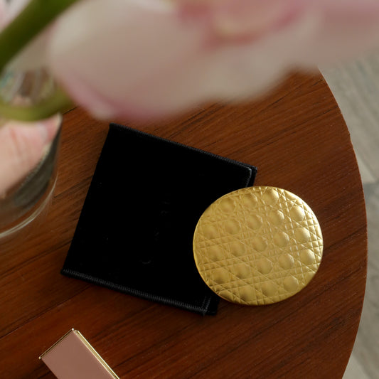 Rare Christian Dior Vintage Metallic Gold Cannage Motif Beauty Mirror