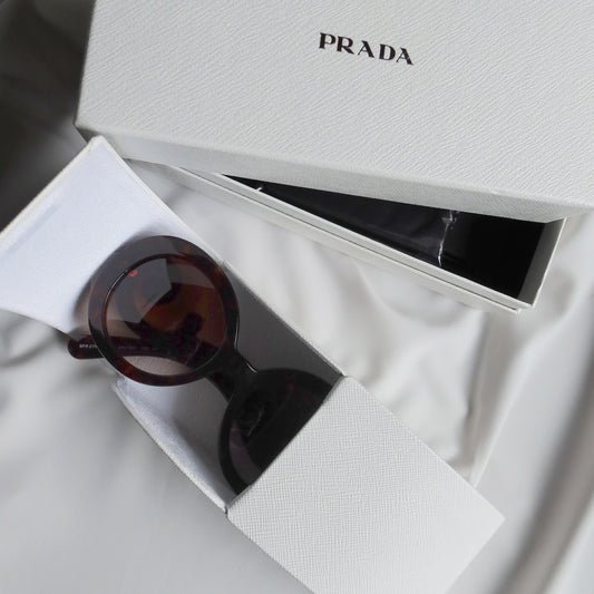 Prada Women Baroque Swirl Round Sunglasses in Havana Brown
