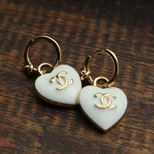 Chanel Vintage Yes No Heart Stud CC Charm Hoop Earrings
