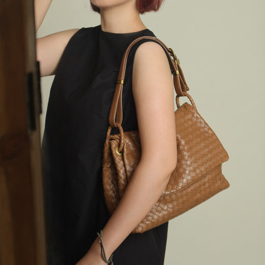 Bottega Veneta Vintage Dark Brown Intrecciato Weave Turn Lock 2way Shoulder Bag