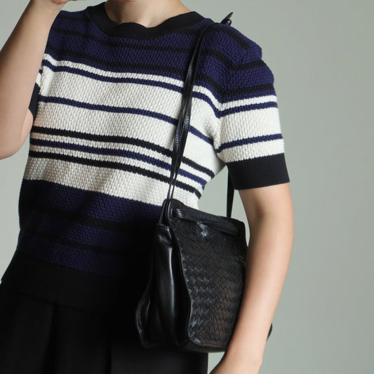Bottega Veneta Vintage Black Leather Intrecciato Weave 3way Shoulder Bag