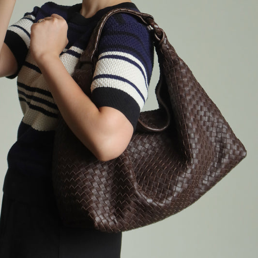 Bottega Veneta Vintage Dark Chocolate Brown Intrecciato Leather 2way Shoulder Bag