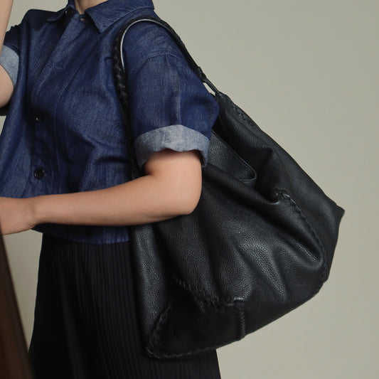 Bottega Veneta Vintage Black Intrecciato Weave Strips XL Hobo Shoulder Bag