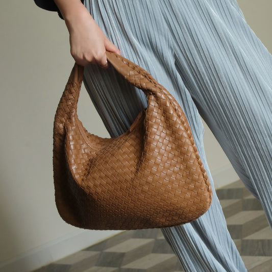 Bottega Veneta Vintage Caramel Brown Intrecciato Weave Veneta Hobo Shoulder Bag