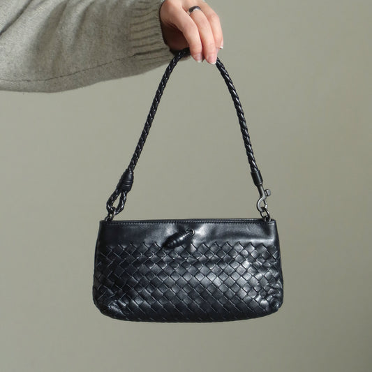 Bottega Veneta Vintage Black Intrecciato Weave Pochette Clutch Shoulder Bag