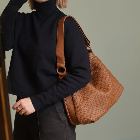 Bottega Veneta Vintage Tan Brown Intrecciato Ring Strap Shoulder Bag