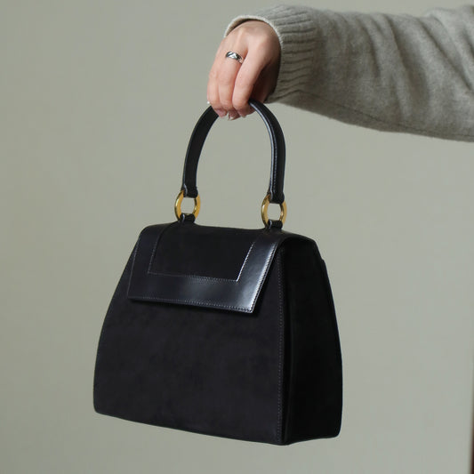 Rare Celine Vintage Leather x Suede Arc de Triphome Top Handle Flap Bag