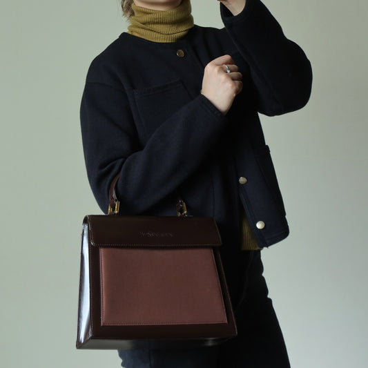 YSL Saint Laurent Vintage Brown Leather Boxy 2way Top Handle Flap Bag