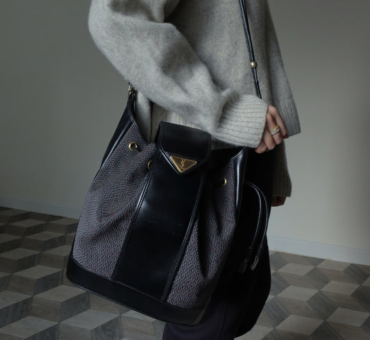 YSL Vintage Black Bucket Shoulder Bag with Golden YSL logo