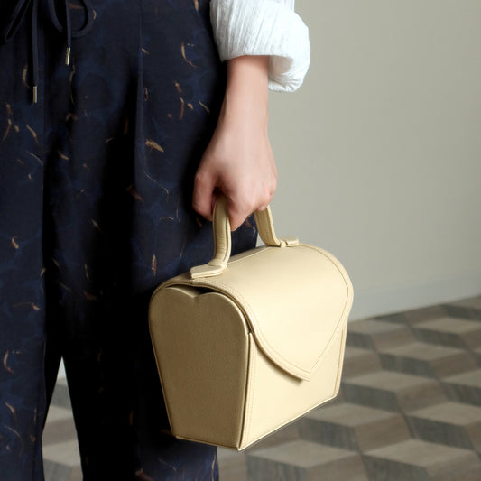 YSL Vintage Ivory Leather Heart Shape Picnic Style Top Handle Bag