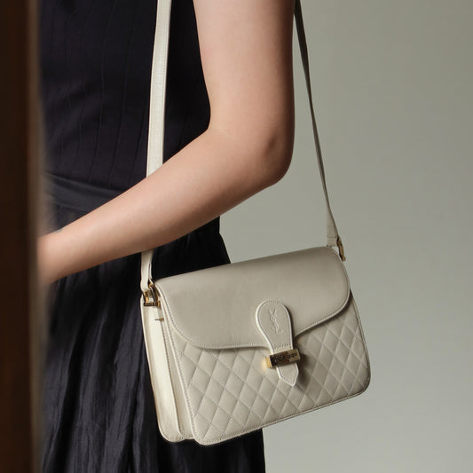 Yves Saint Laurent YSL Vintage Ivory Quilted Gold Buckle Crossbody Flap bag
