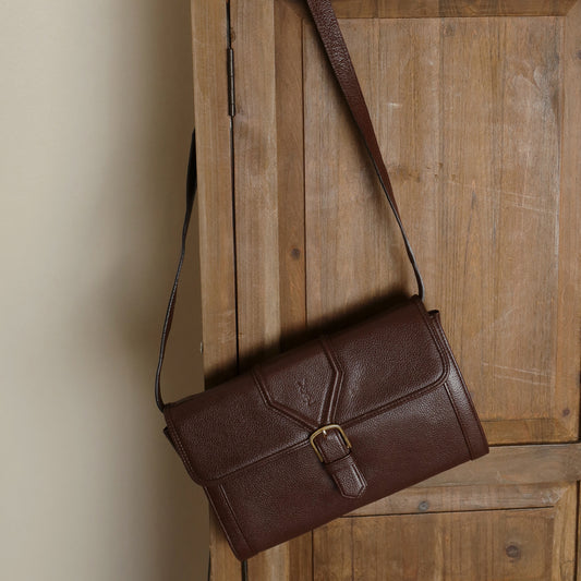 YSL Vintage Brown Leather Buckle 2way Crossbody Flap bag