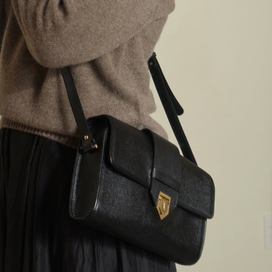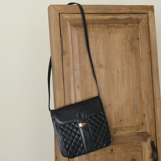 YSL Vintage Black Leather Gold Buckle Crossbody Flap Bag