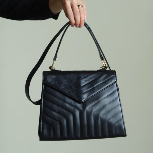 YSL Saint Laurent Vintage Black Leather Y trapezoid 2way Top Handle Flap Bag