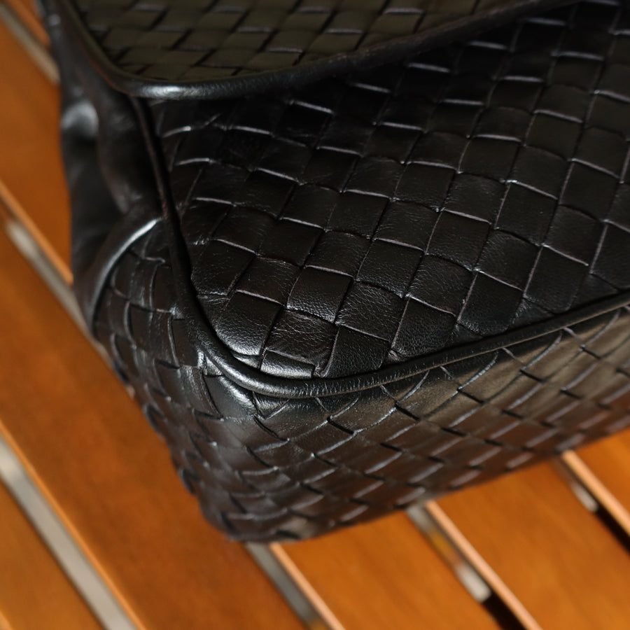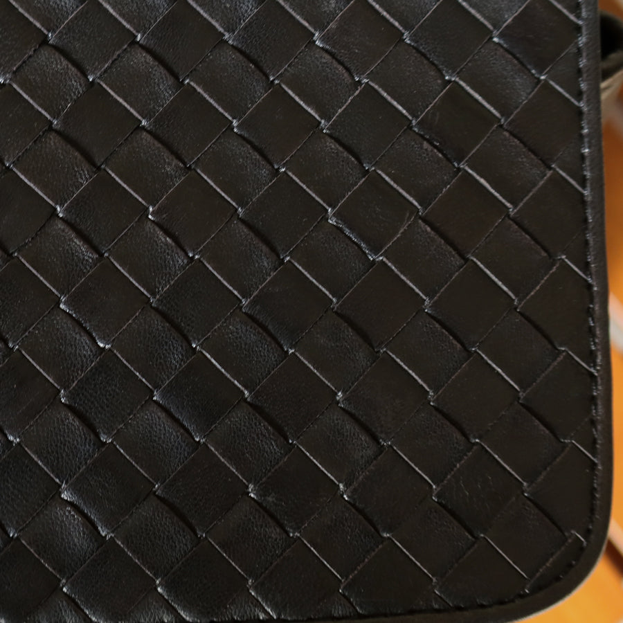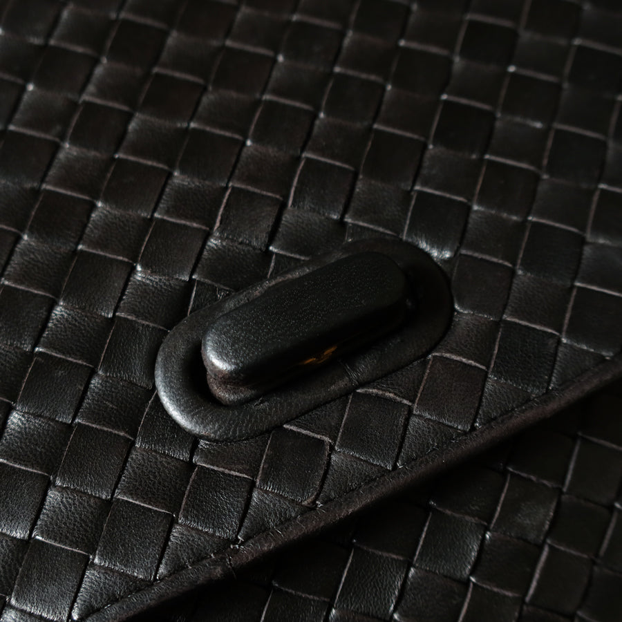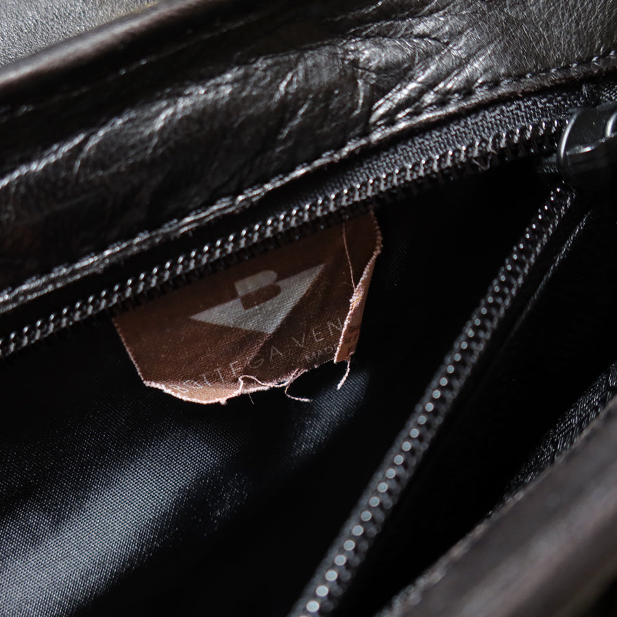 Bottega Veneta Vintage Black Intrecciato Turn Lock Braided Top Handle Bag