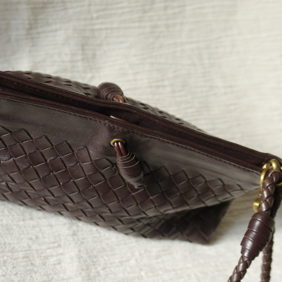Bottega Veneta Vintage Dark Brown Intrecciato 2way Shoulder Clutch Bag M
