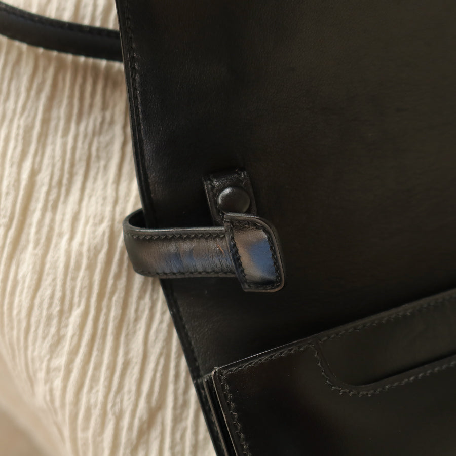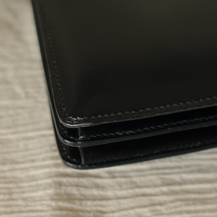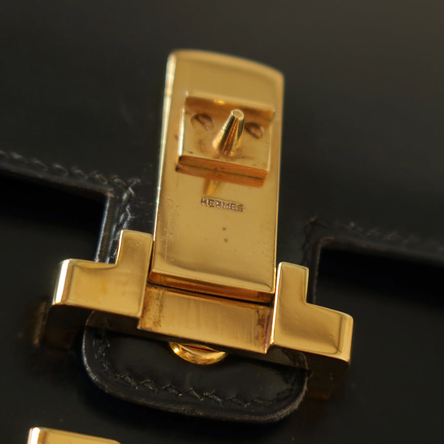 Hermès Vintage 70s Black Box Calf Leather 2 way Shoulder Clutch Bag