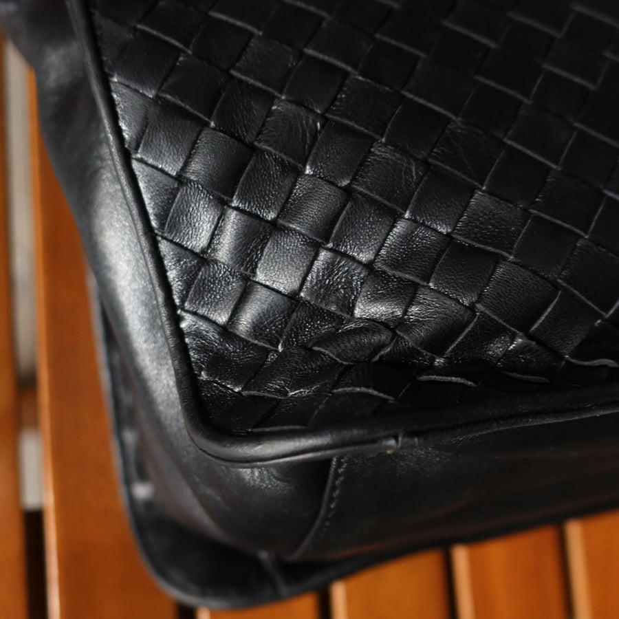 Bottega Veneta Vintage Black Intrecciato Ring Braided Strap Shoulder Bag